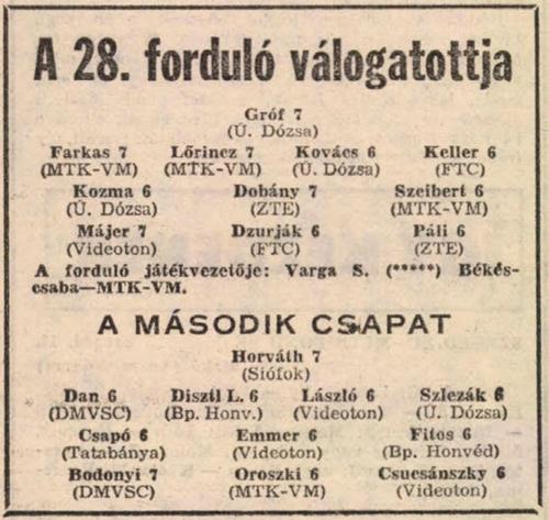 13 gólos: Kovács K. (Bp. Honvéd), Kiprich (Tatabánya)