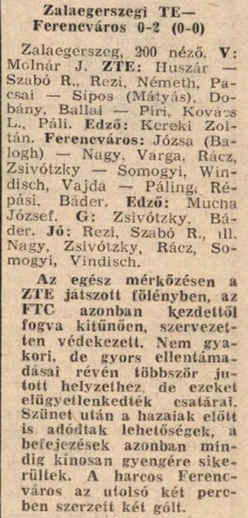 Küzdelmes, de meglehetősen mérsékelt szinvonalu mérkőzést láthattak a nézők. Már az első félidőben is az FTC játszott valamivel jobban, fordulás után pedig minden tekintetben felülmulta a harmatgyenge teljesitményt nyujtó egerszegi együttest.
