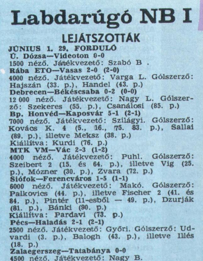 11 gólos: Pölöskei (MTK VM), Rubold (Rába ETO), Vincze I. (Tatabánya), Szabadi (Vasas)