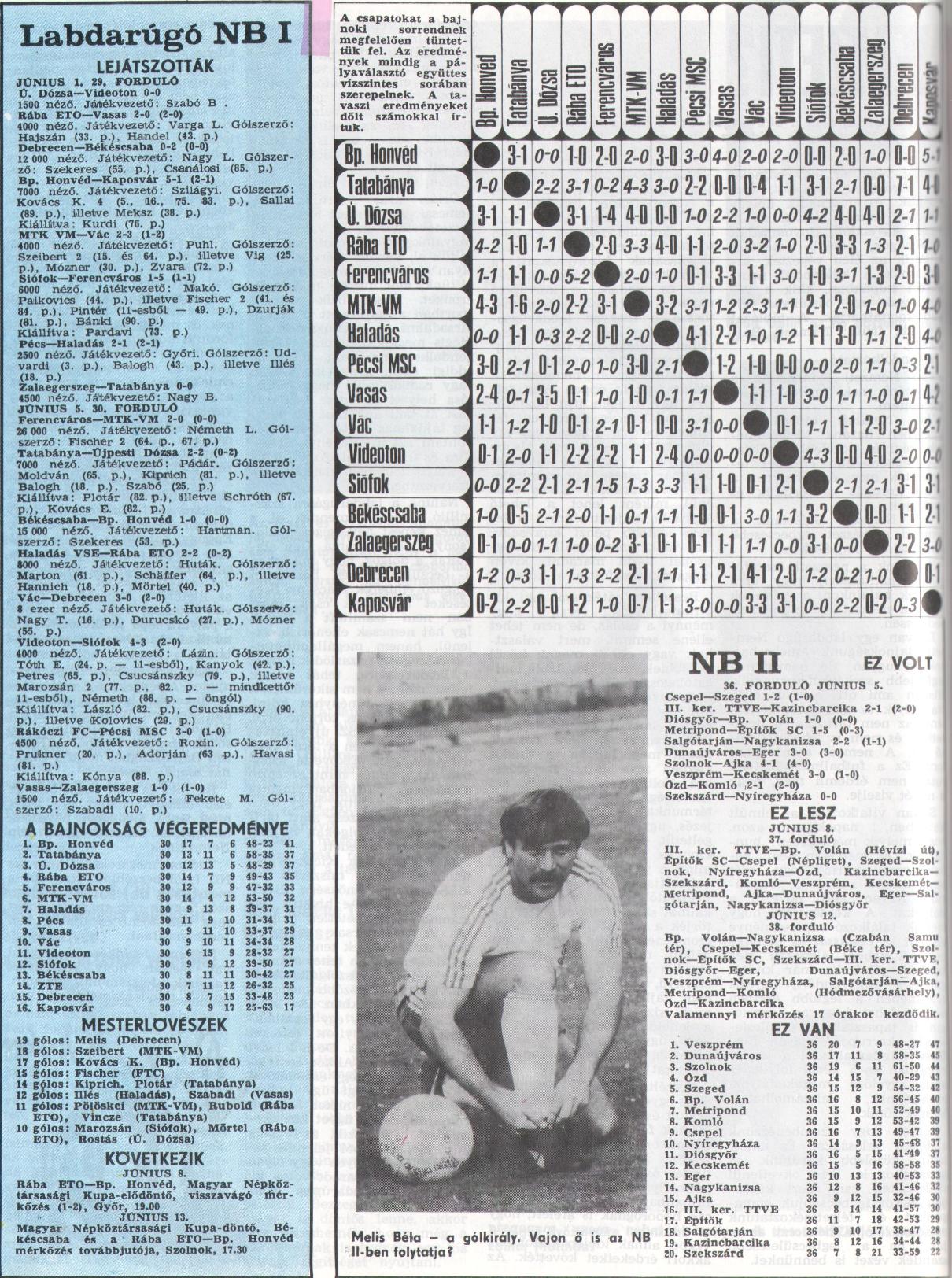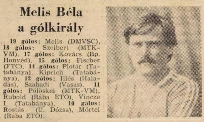 12 gólos: Illés Béla (Haladás VSE), Szabadi László (Vasas)
