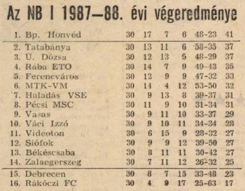 1. Bp. Honvéd 30 17 7 6 48-23 41 pont