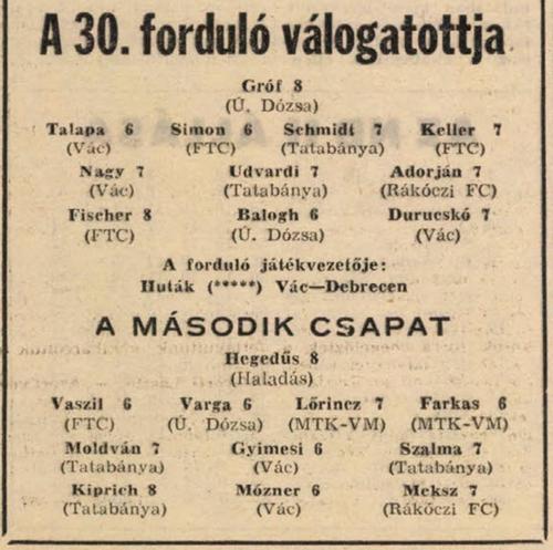 10 gólos: Rostás Sándor (U. Dózsa), Fodor Imre (Bp. Honvéd)