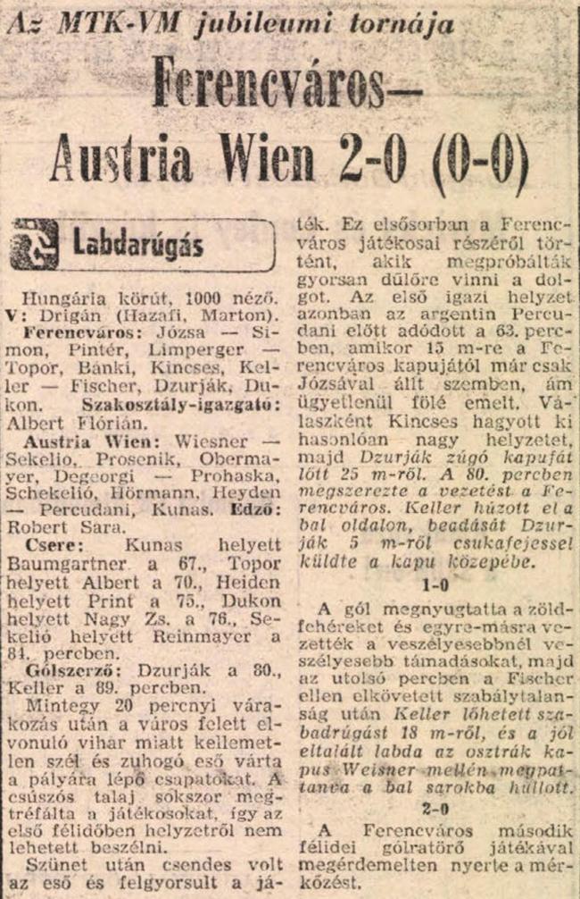 1988.VIII.3. MTK Jubileumi Torna, Ferencváros – Austria Wien 2-0