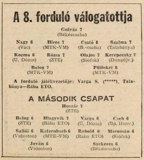 5 gólos: Handel (Rába ETO), Kiprich (Tatabánya), Balogh G. (Vác)