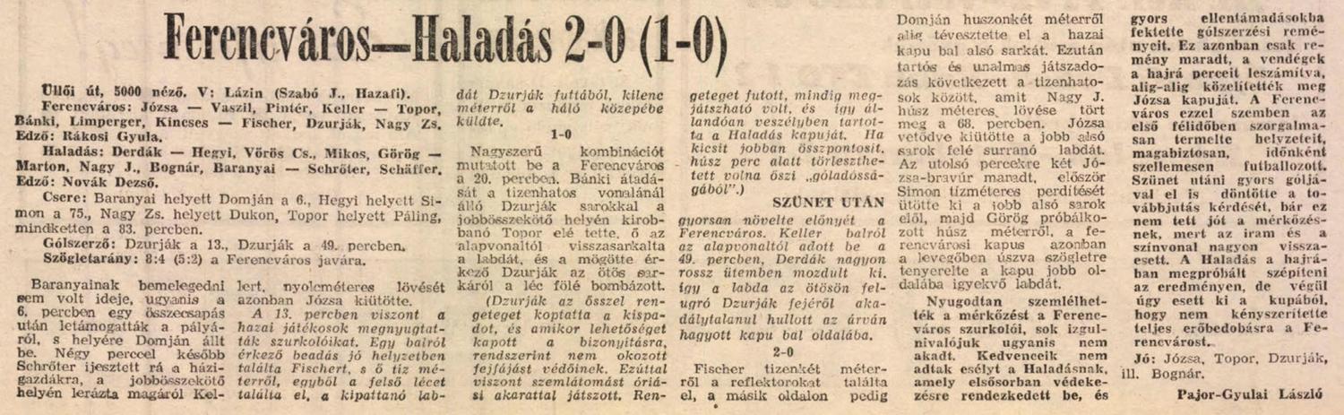 Ferencváros: Józsa – Vaszil, Pintér, Keller – Topor (Páling 83.) Bánki, Limperger, Kincses – Fischer, Dzurják, Nagy Zs. (Dukon 83.)
