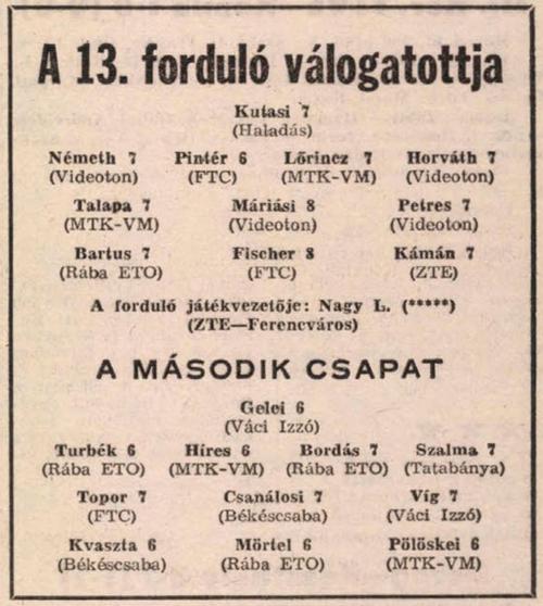 6 gólos: Szabadi (Vasas), Kiprich (Tatabánya), Kámán (ZTE), Kvaszta (Békéscsaba)