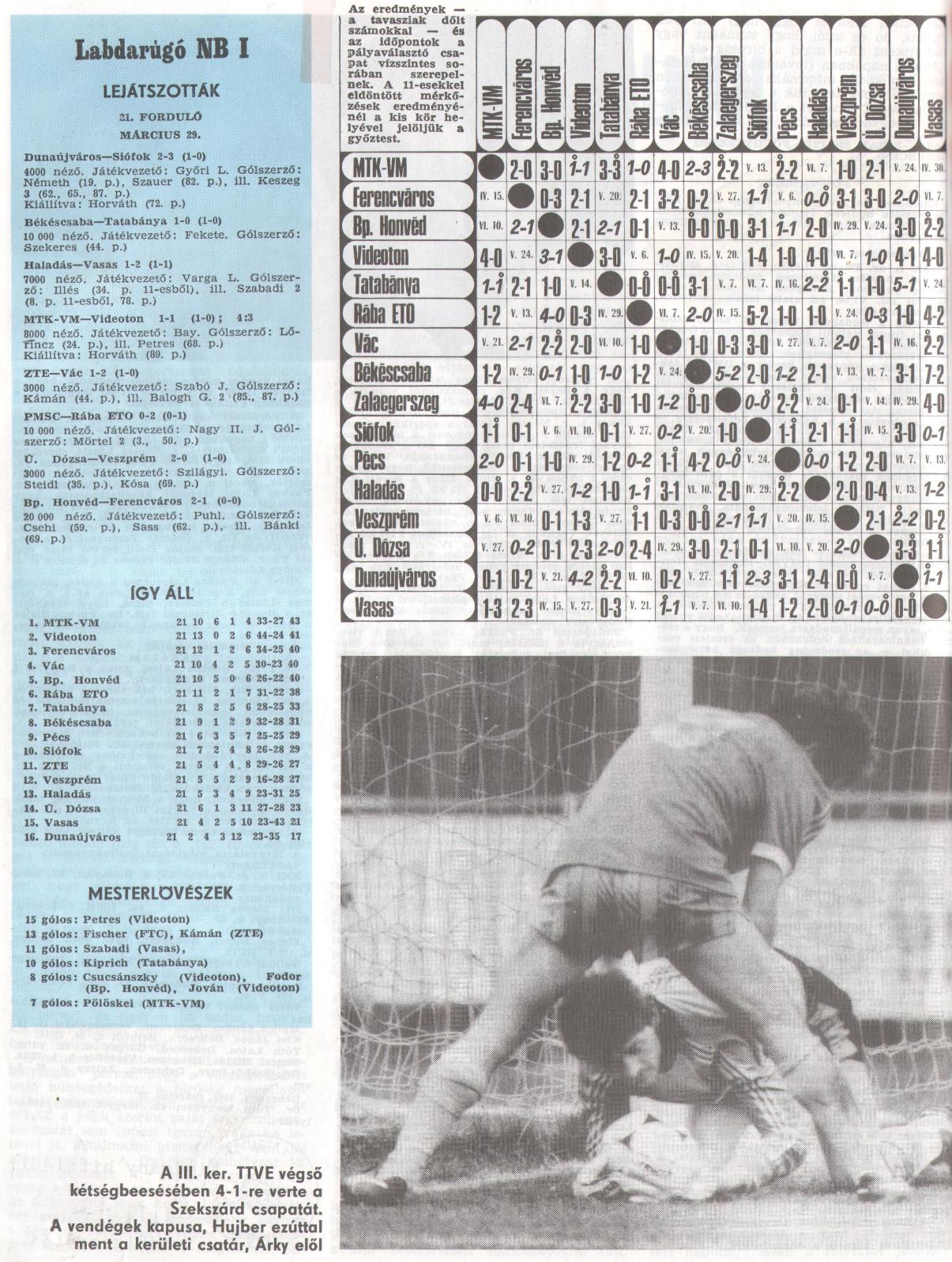 8 gólos: Fodor (Bp. Honvéd), Jován (Videoton), Balogh G. (Vác)