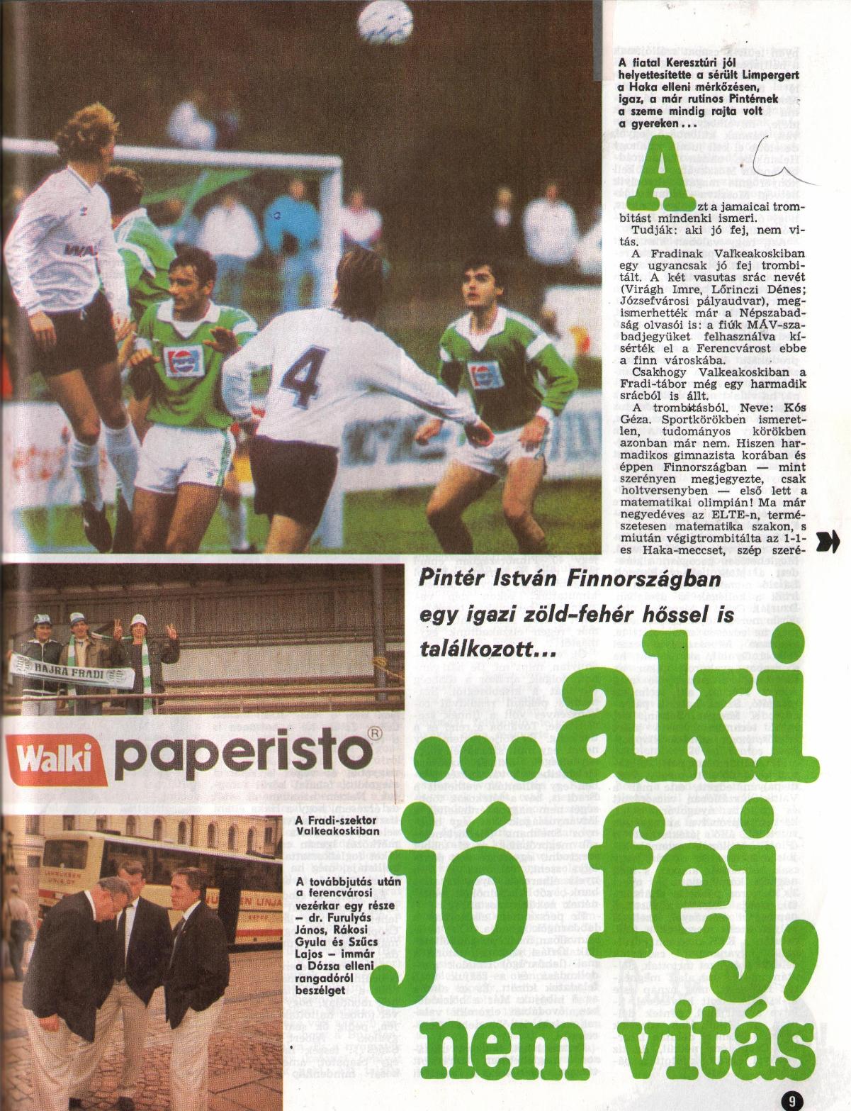 1989.IX.27. KEK, FC Haka – Ferencváros 1-1