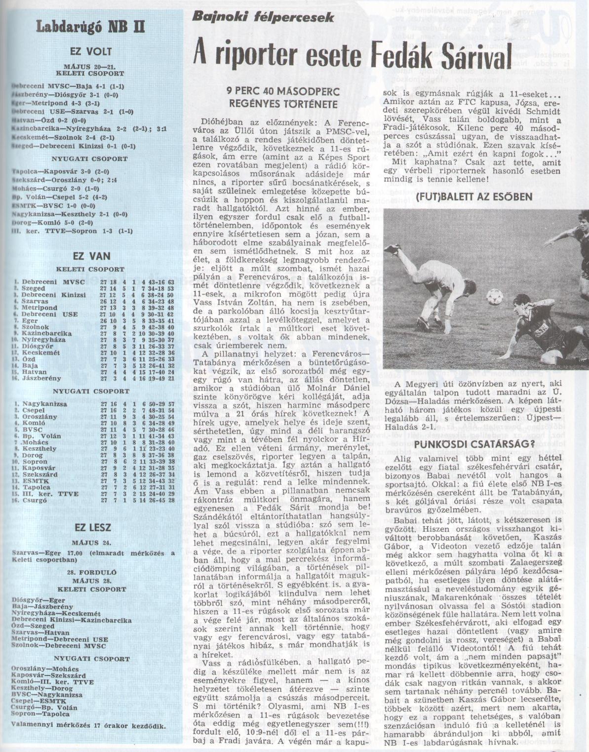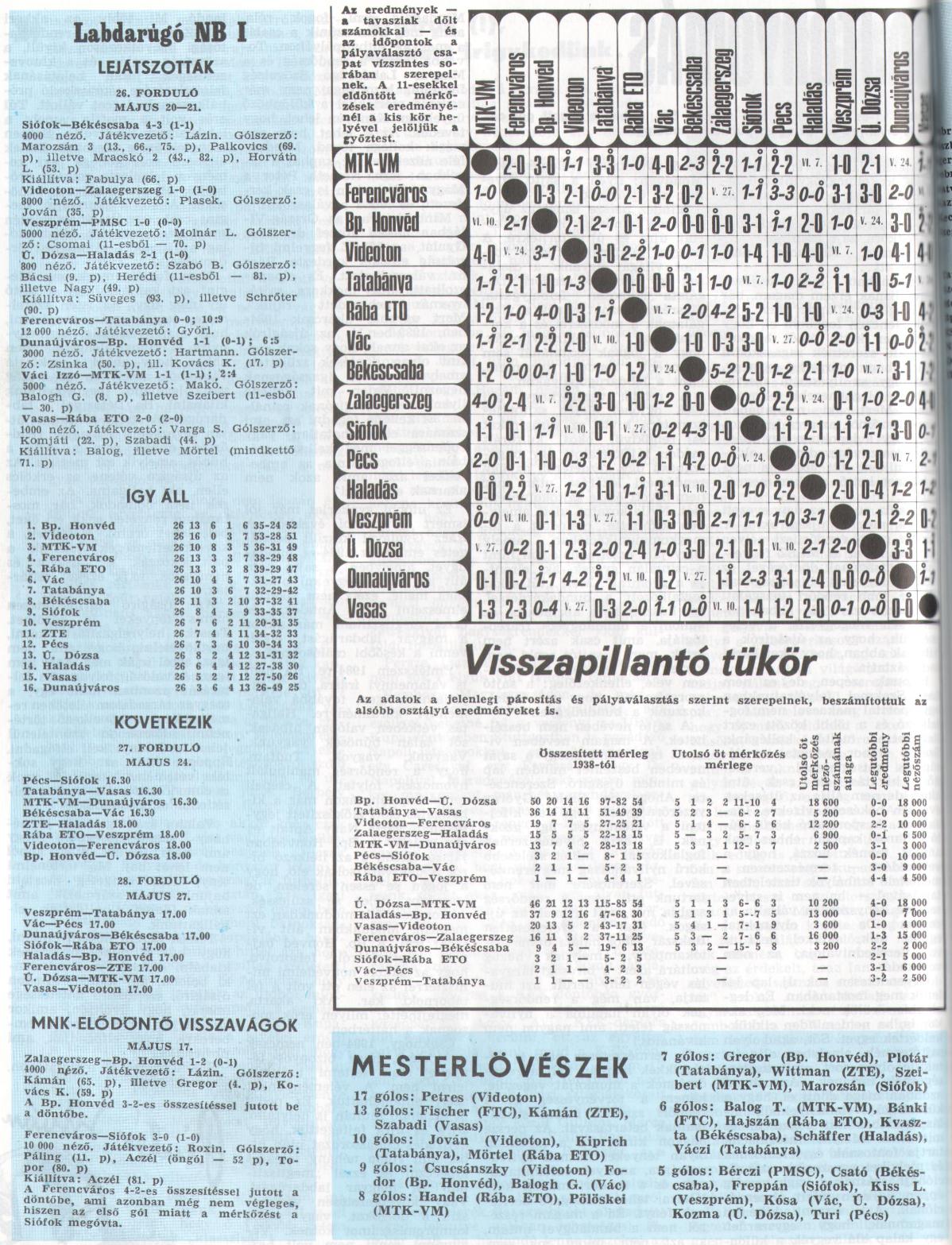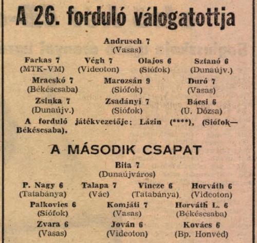 9 gólos: Csucsánszky (Videoton), Fodor (Bp. Honvéd)