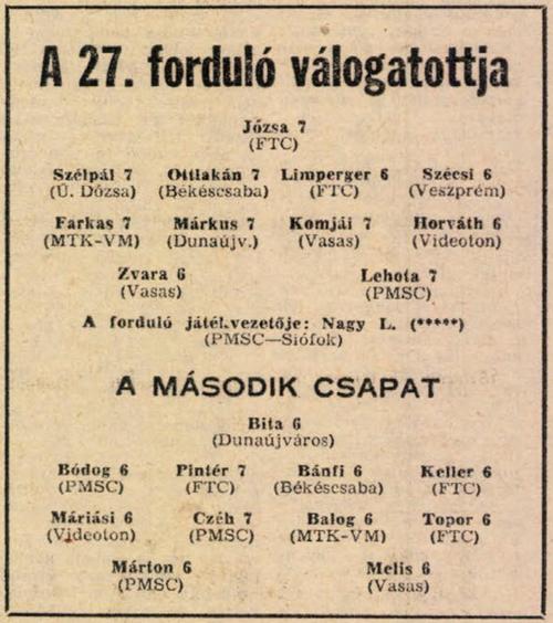 9 gólos: Csucsánszky (Videoton), Fodor (Bp. Honvéd)