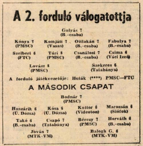2 gólos: Csanálosi, Miklya (Békéscsaba), Dzurják (Ferencváros), Lovász (PMSC)