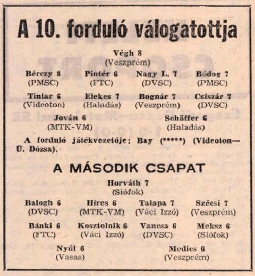 4 gólos: Handel (Rába ETO), Balog T. (MTK-VM), Schmidt (Vasas)