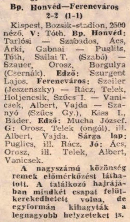 bár, nem vagyok retrósan szólva Honvéd -drukker, de ellendrukker sem…