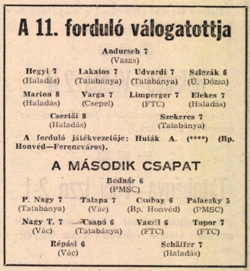 4 gólos: Handel (Rába ETO), Balog T. (MTK-VM), Schmidt (Vasas)