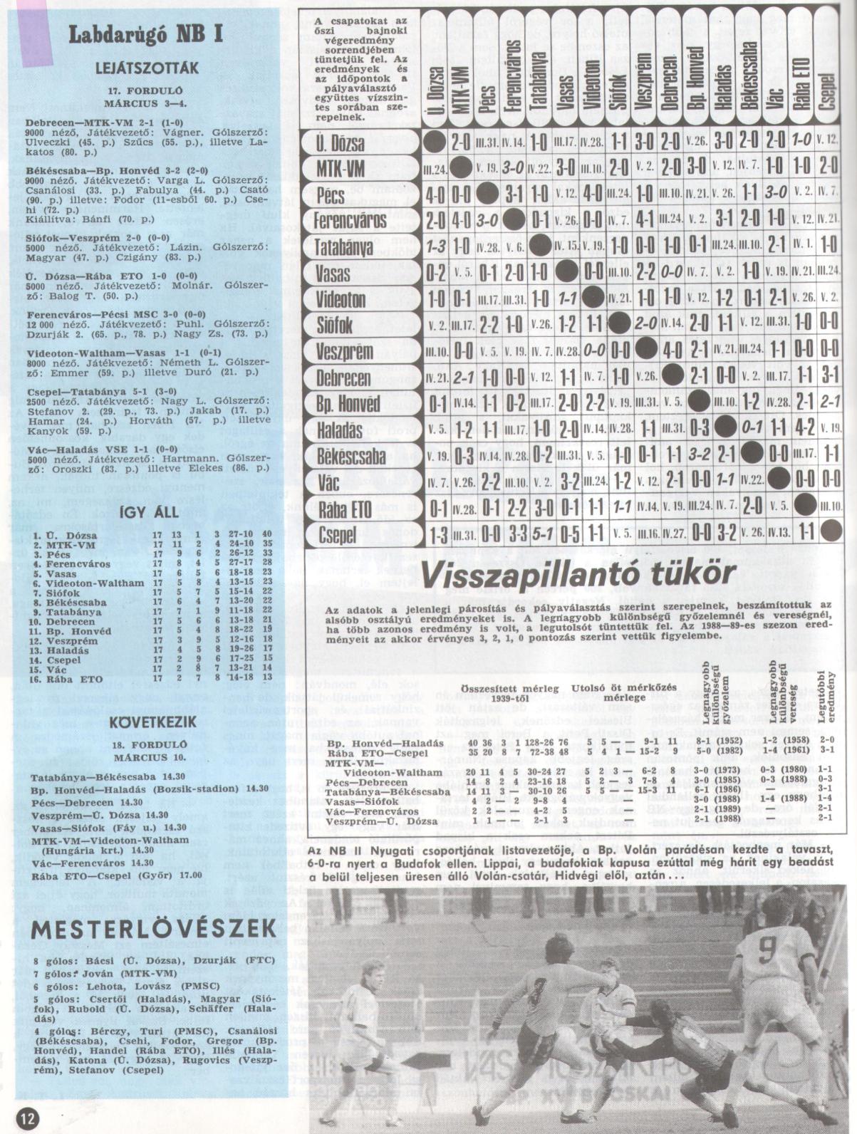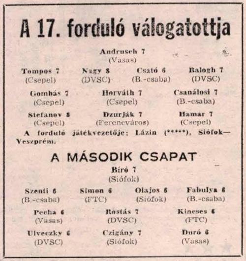 8 gólos: Bácsi (Ú. Dózsa), Dzurják (Ferencváros)