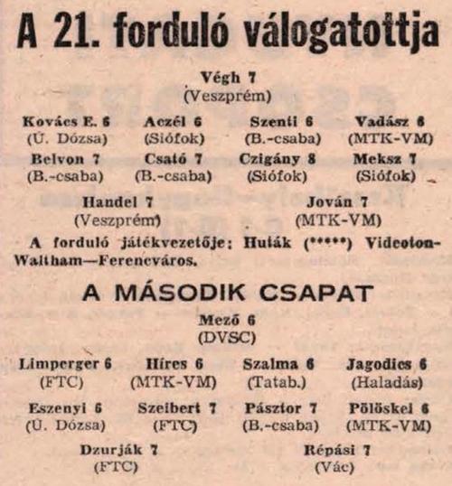 Jók: Petry, Németh, Horváth, illetve Szeibert, Dzurják, Fonnyadt, Limperger