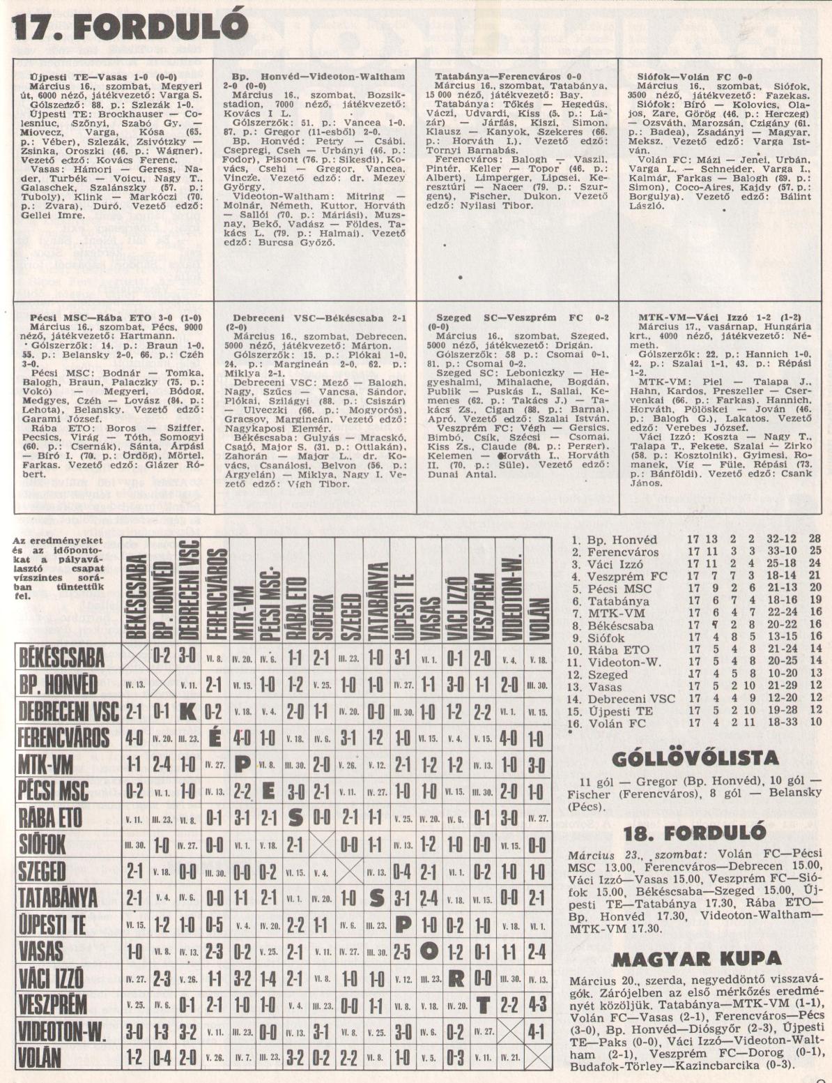 5 gólos: Kecskés (UTE), Répási (Vác), Plotár (Veszprém), Balogh I. (Volán)