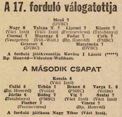 Jók: Klausz, Hegedűs, Lázár illetve Pintér, Fischer, Limperger, Lipcsei