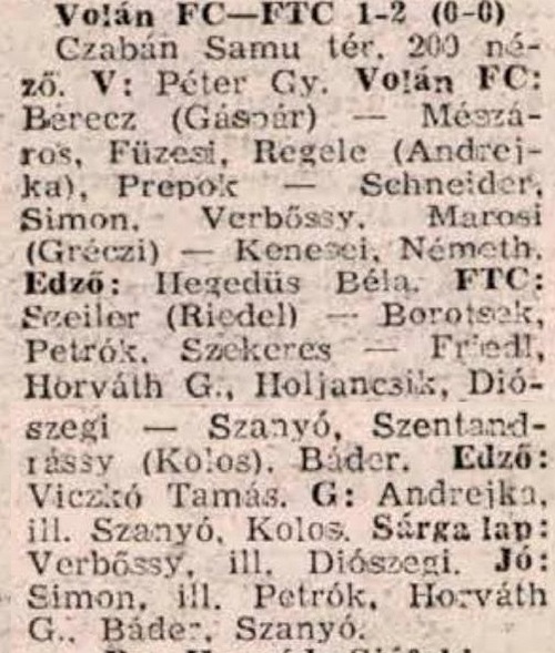 Volán FC – Ferencváros 1:1 (0:1)