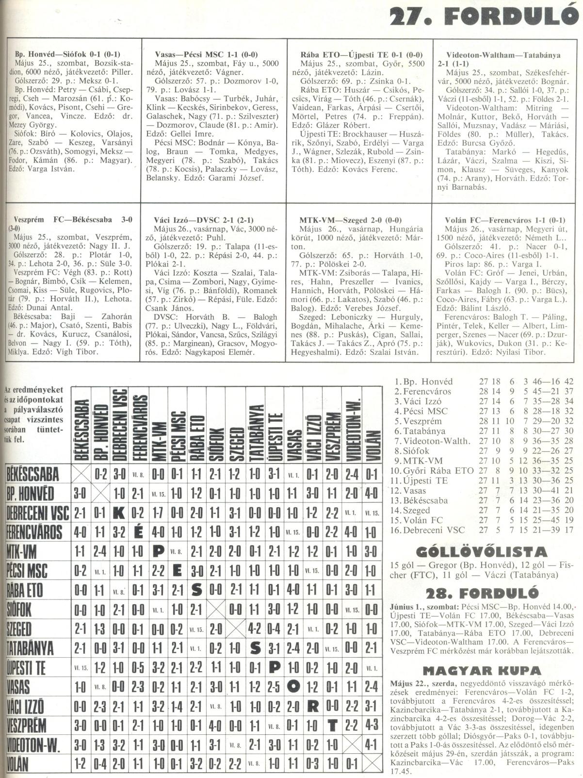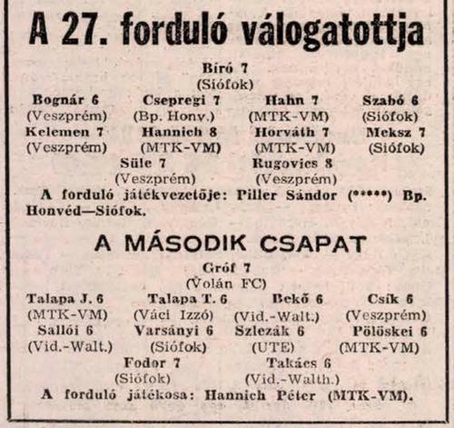 1. Bp. Honvéd 27 18 6 3 46-16 42 pont