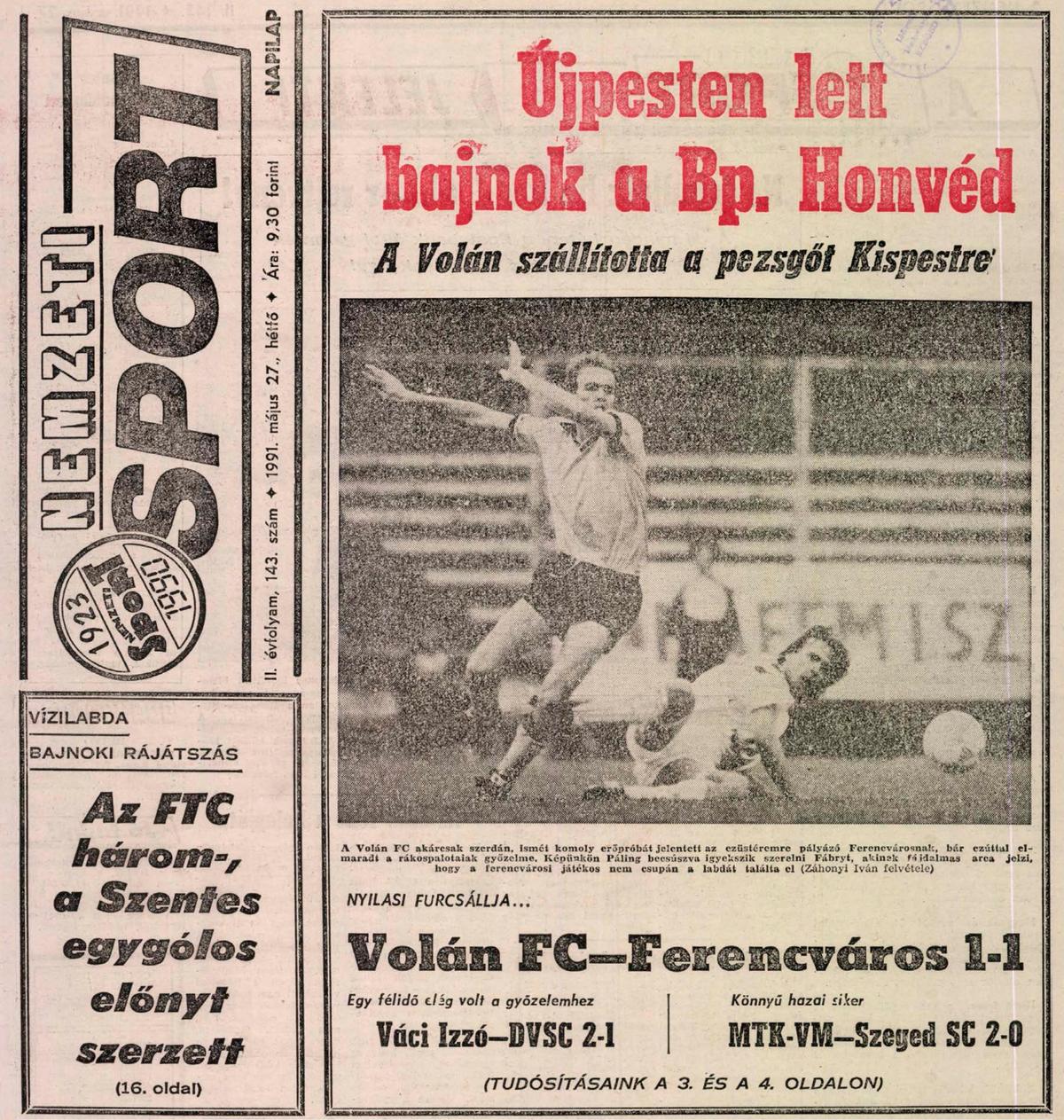 1991.V.26. Volán FC – Ferencváros 1-1
