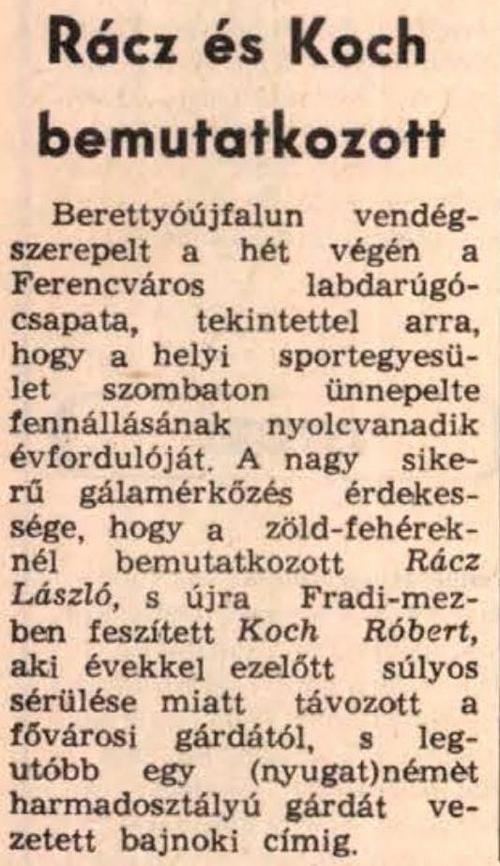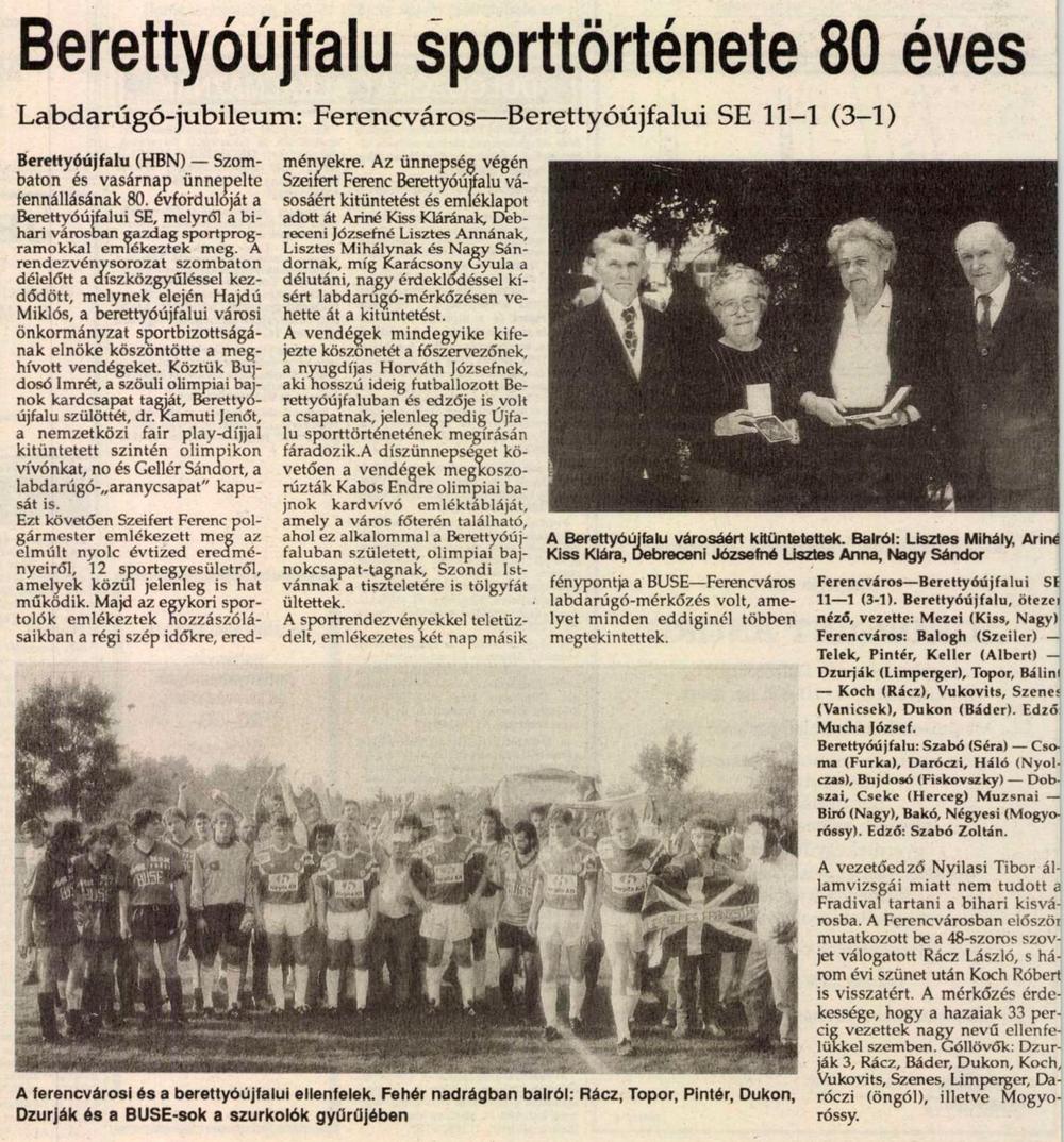 1991.VI.1. Jubileumi mérkőzés, Berettyóújfalui SE – Ferencváros 1-11