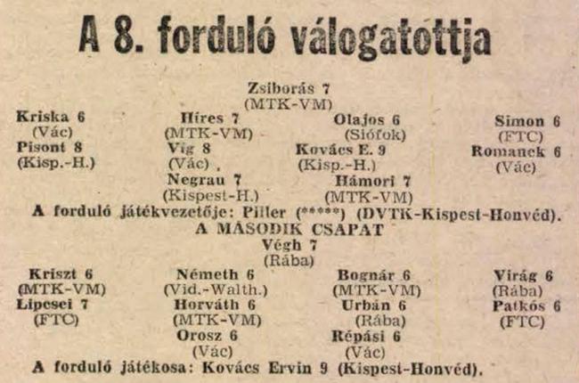 5 gólos: Vincze I. (Kispest-Honvéd FC)