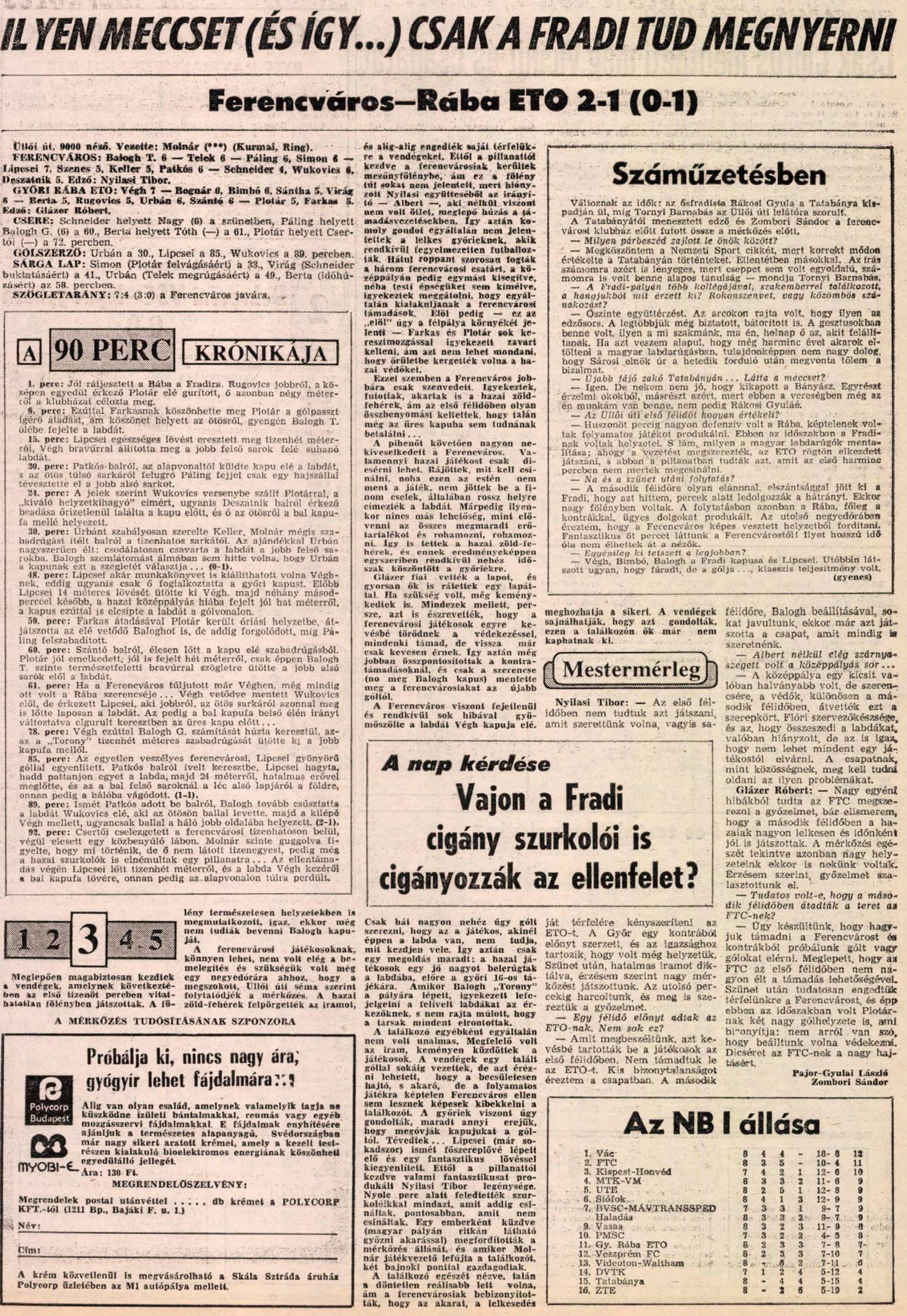 1991.X.12. Ferencváros – Győri Rába ETO 2-1