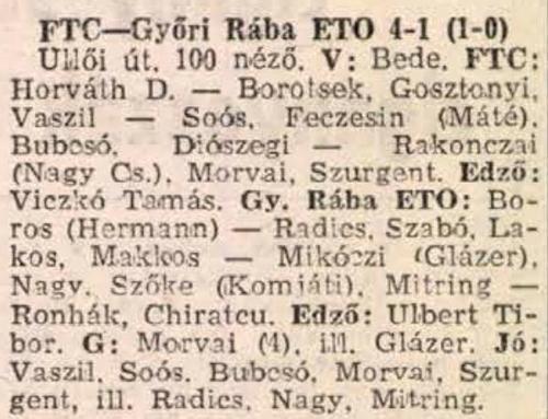 Ferencváros – Győri Rába ETO 2:1 (0:1)