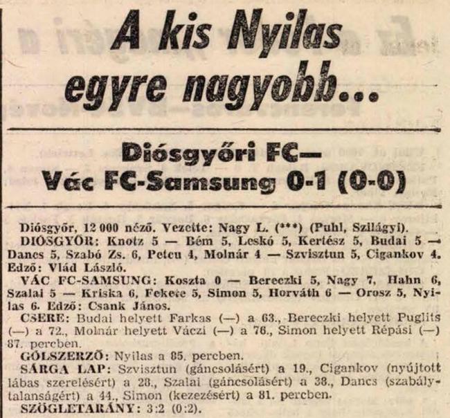 BVSC: Gáspár – Króner, Nahóczky, Iscsak, Nyikiforov – Farkasházy, Bognár (Garas 81.), Huszák, Farkas – Morzsa (Balogh Z. 81.), Gracsov
