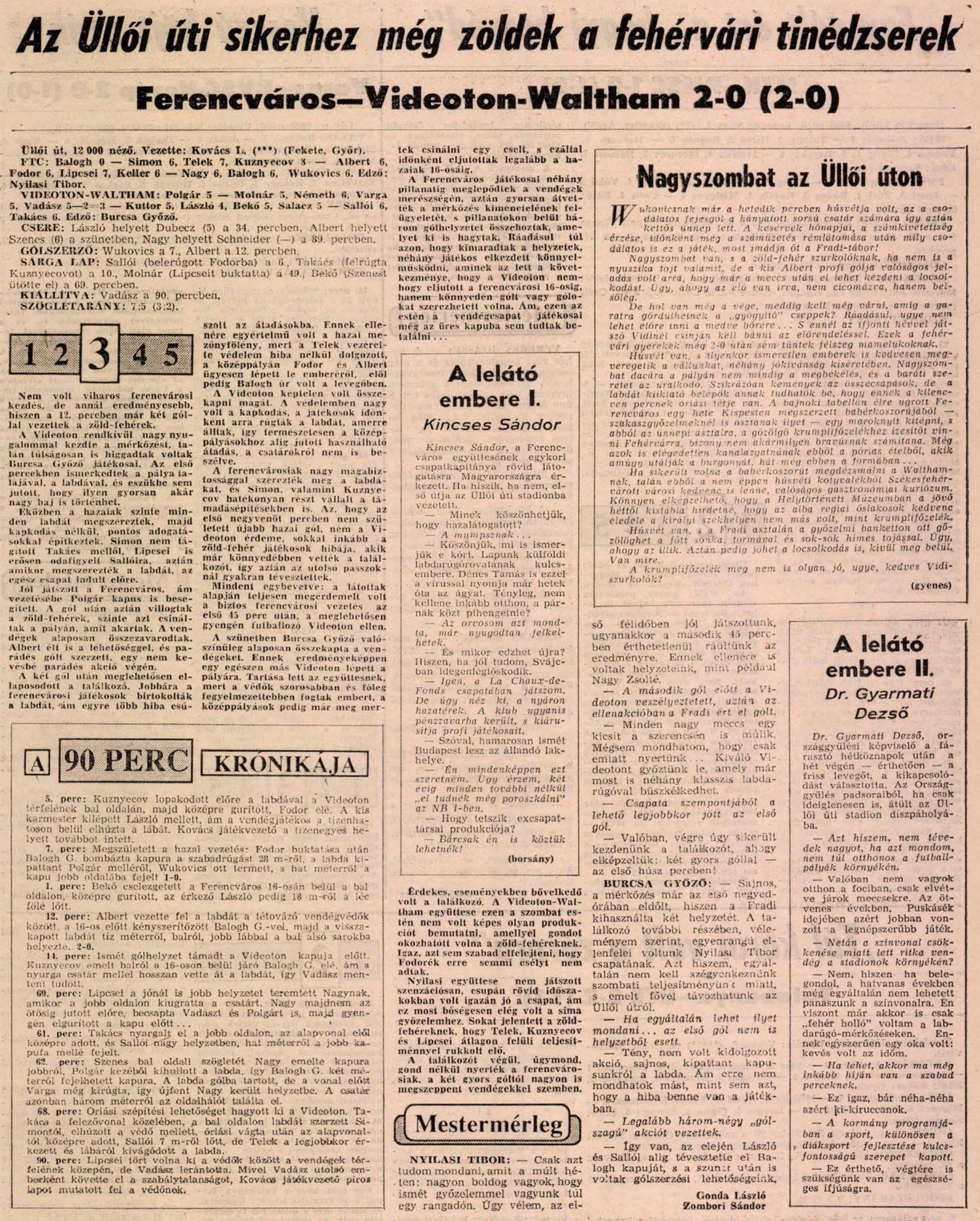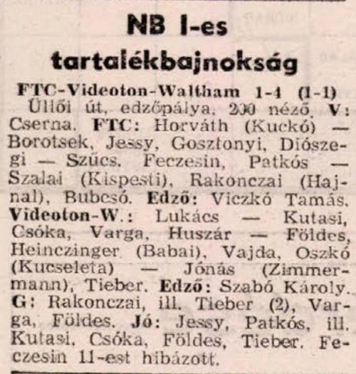 Videoton-Waltham: Polgár – Molnár, Németh, Varga, Vadász – Kuttor, László (Dubecz 34.), Bekő, Salacz – Sallói, Takács