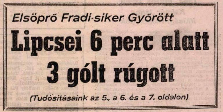 Még a legöregebb Fradi szurkolók sem igen emlékeznek olyan sorozatra, amellyel most a Ferencváros labdarugó csapata büszkélkedhet. A legutóbbi négy bajnoki mérkőzésen 17 gólt lőtt a zöld-fehér együttes, s mindössze egyet kapott (ZTE 7:0, Kispest-Honvéd 2:0, Videoton 2:0, Rába ETO 6:1). Nagy teljesítmény ez, hiszen a legyőzöttek között tekintélyes vetélytársak találhatók, nem beszélve arról; az FTC őrzi tavaszi veretlenségét, öt hónap telt el azóta, hogy utoljára vesztesként (a Pécs ellen) hagyta el a pályát.