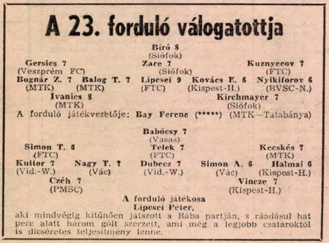 Jók: Végh illetve Balogh T., Lipcsei, Fodor