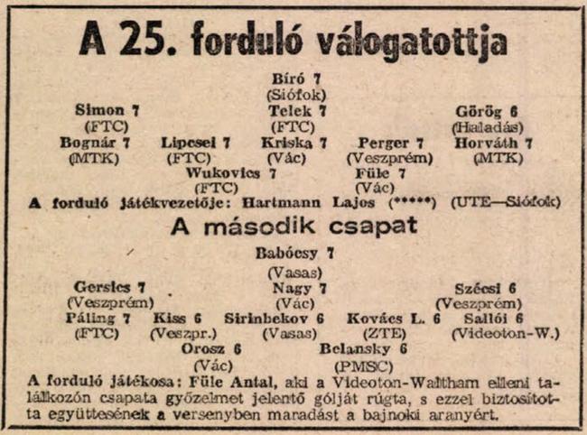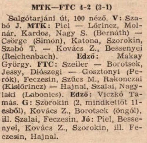 (Az MTI munkatársa később a klubházban Rácz Lászlót kérdezte, ő mit vár? Az igencsak sovány ferencvárosi futballista tömör véleménye: – Ha döntetlen lenne, az nem rossz. Győzelem? Fantasztikus eredmény!)