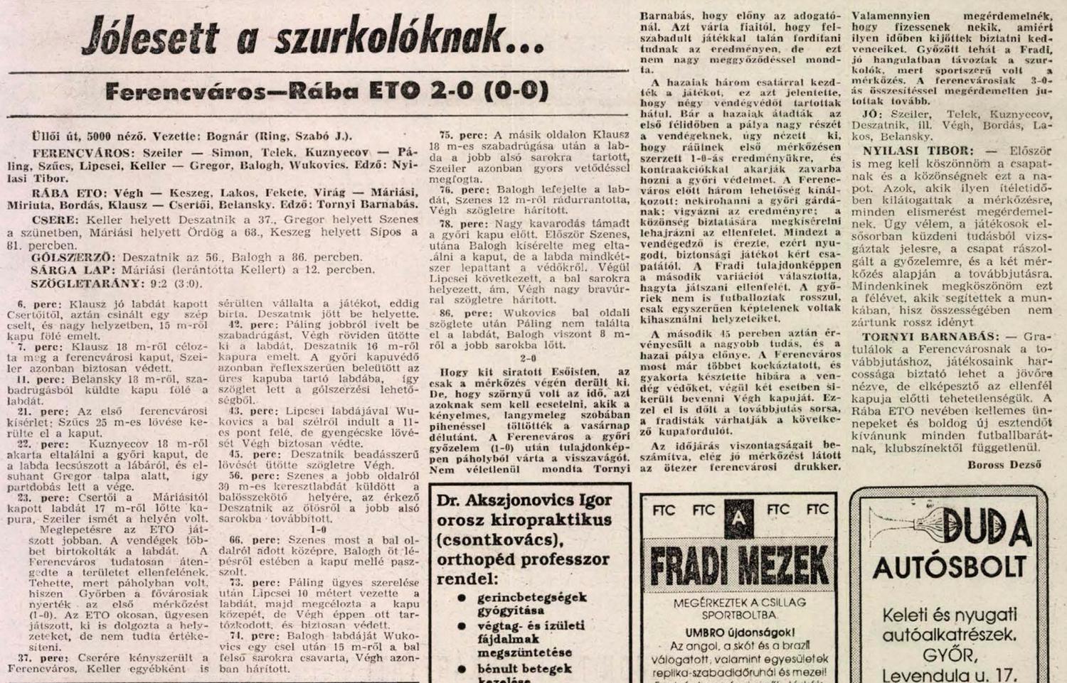 1992.XII.6. MK, Ferencváros – Győri Rába ETO 2-0