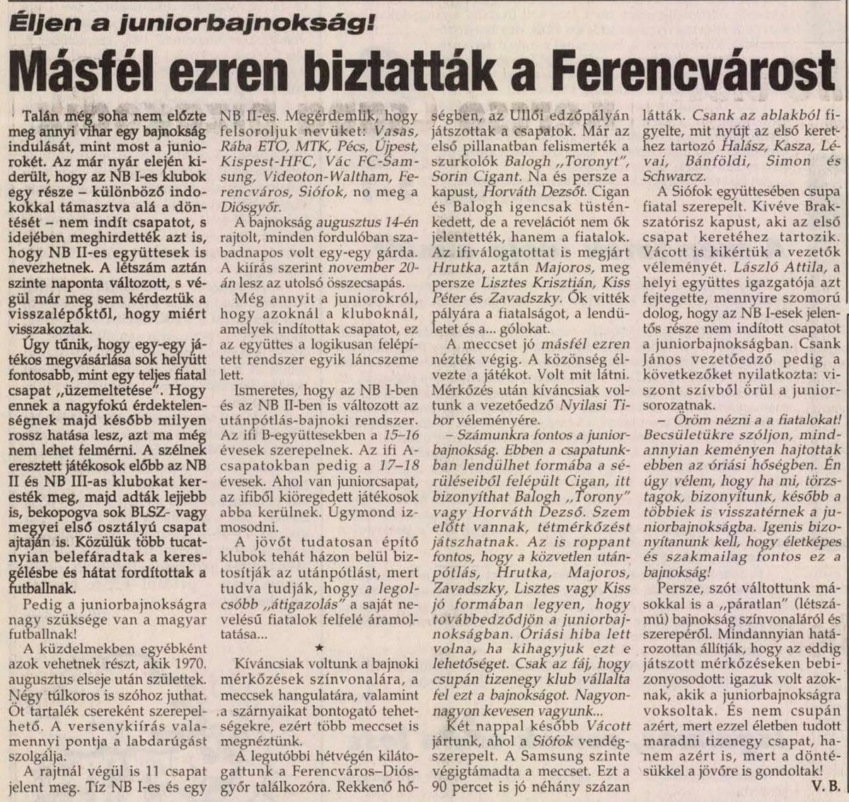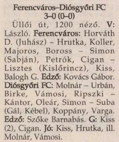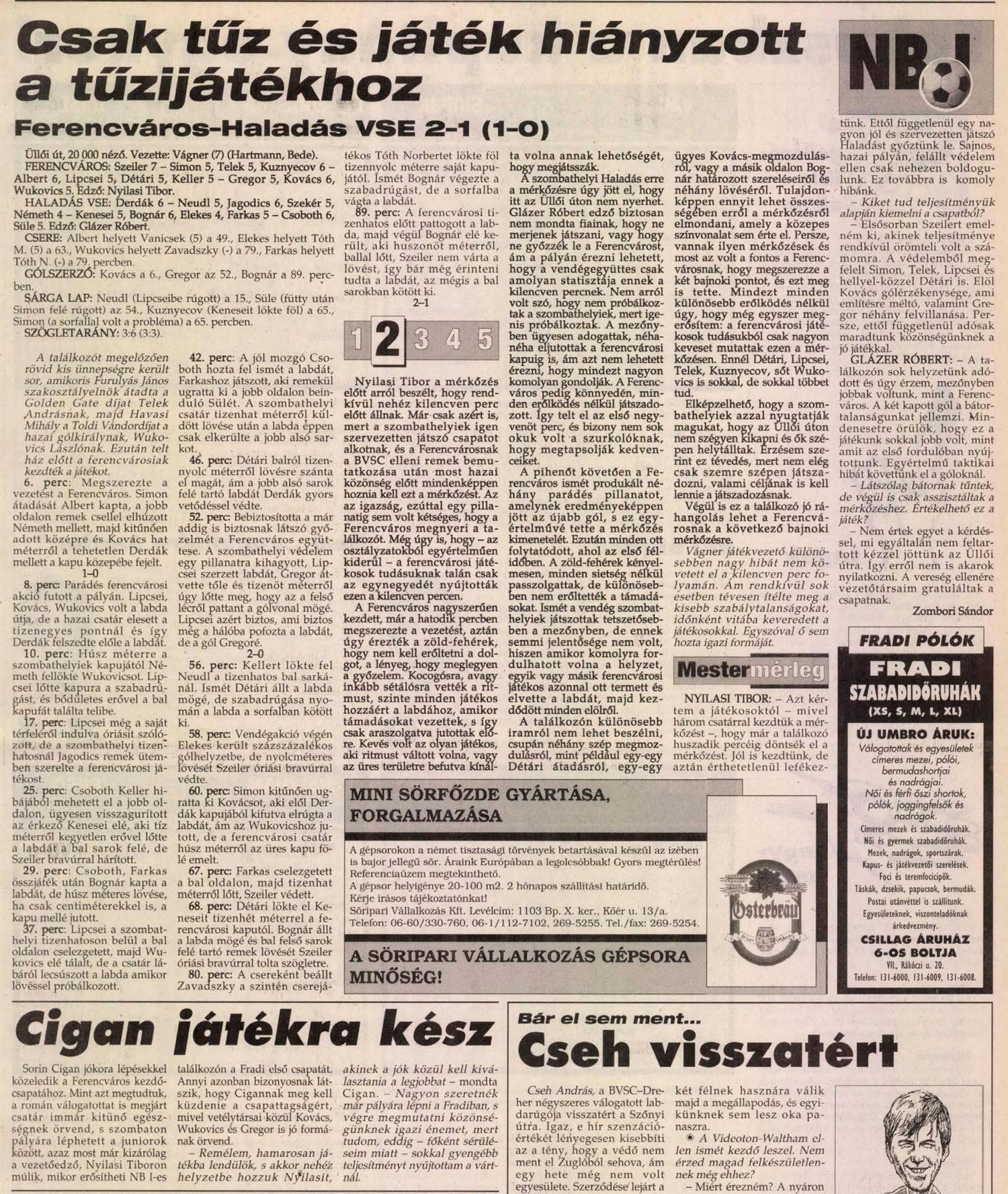 1993.VIII.20. Ferencváros – Haladás 2-1