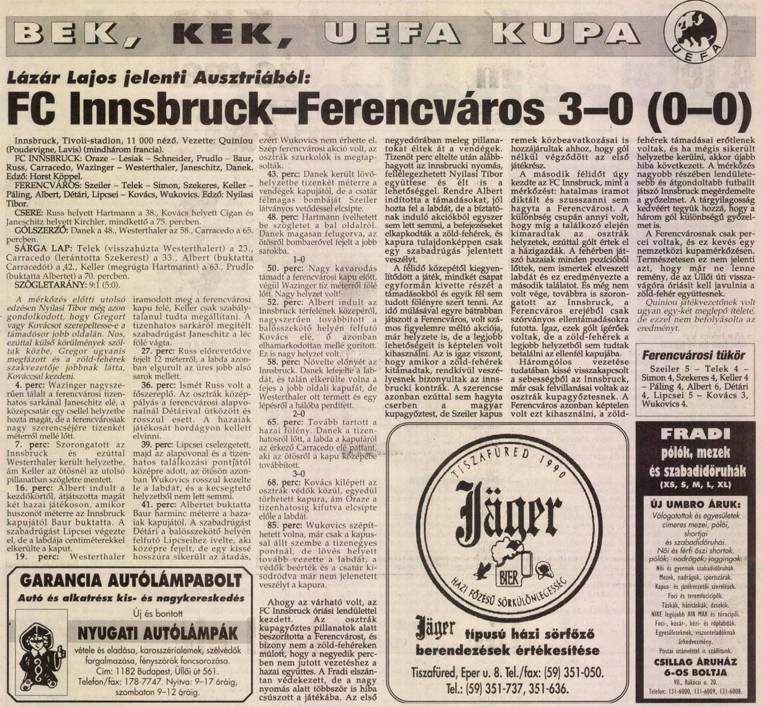 1993.IX.15. KEK, FC Innsbruck – Ferencváros 3-0