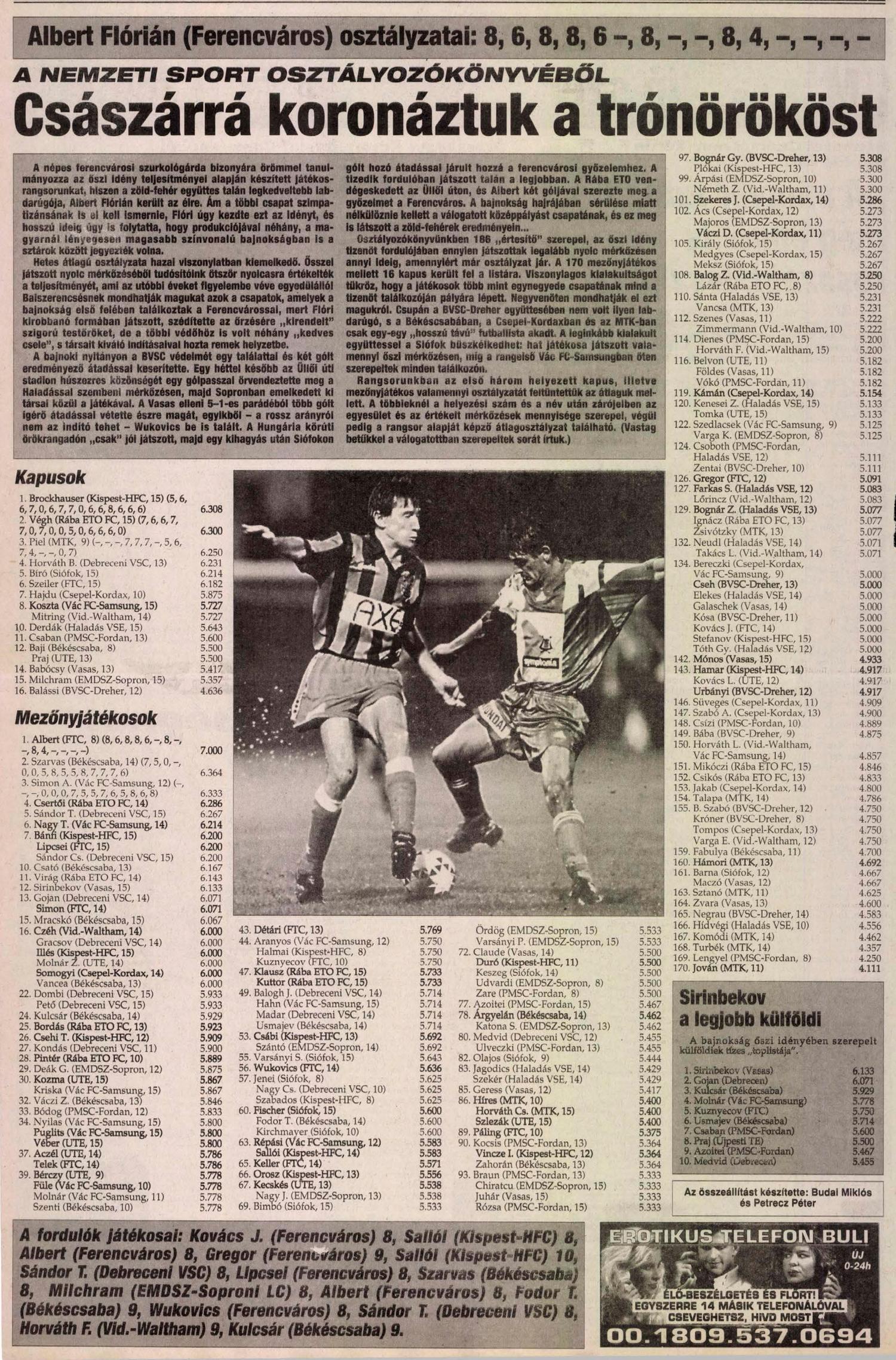 Kategória: Posztonkénti rangsor (NS) | Címke: 1993/94, Albert Flórián ifj., Détári Lajos, Fodor Tibor, Gregor József, Keller József, Kovács József, Kuznyecov Szergej, Lipcsei Péter, Páling Zsolt, posztonkénti rangsor, Simon Tibor, Szeiler József, Szekeres Tamás, Telek András, Végh Zoltán, Wukovics László