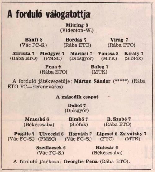 8 gólos: Kovács J. (Siófok), Sallói, Horváth F. (mindkettő Videoton-Waltham)