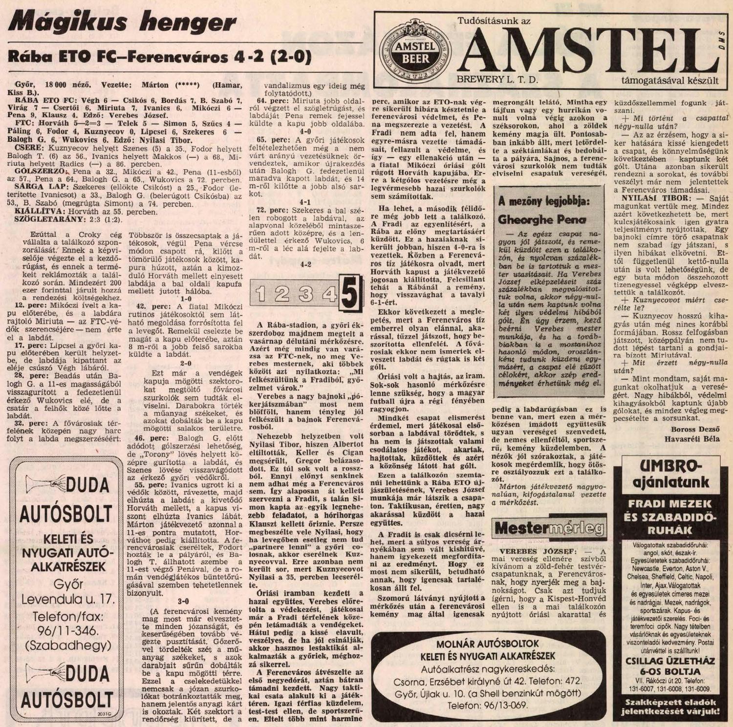1993.IV.18. Rába ETO – Ferencváros 4-2