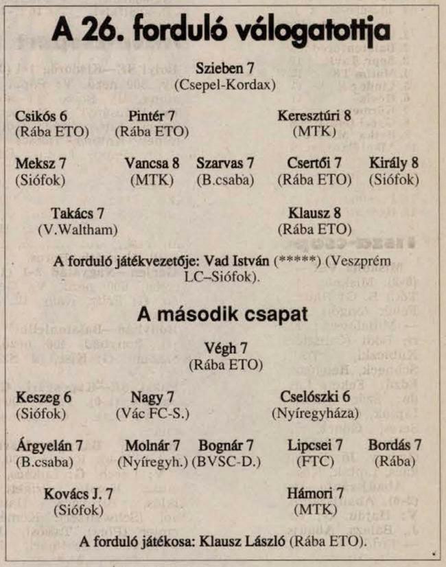 8 gólos: Sallói, Takács (mindkettő Videoton-Waltham), Kámán (Siófok), Kulcsár (Békéscsaba), Wukovics (Ferencváros)