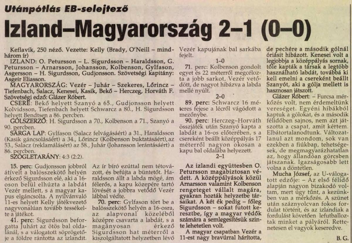 1993.VI.16. VB selejtező, Izland – Magyarország 2-0