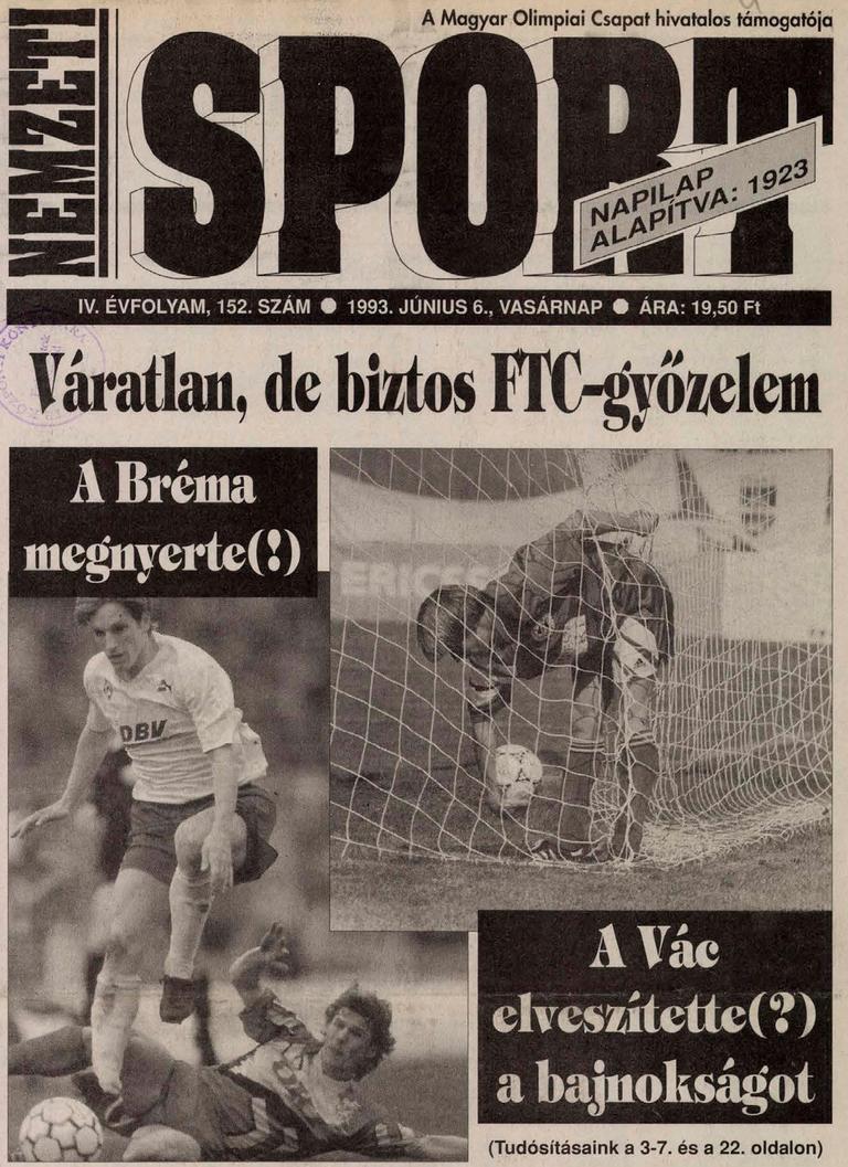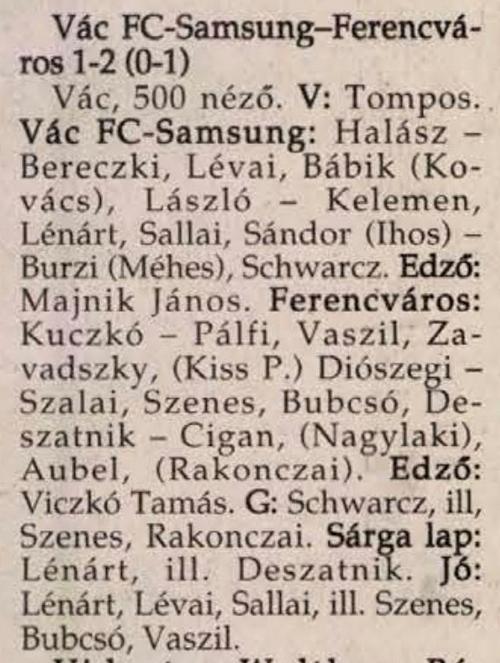1993.VI.5. Vác FC-Samsung – Ferencváros 1-3