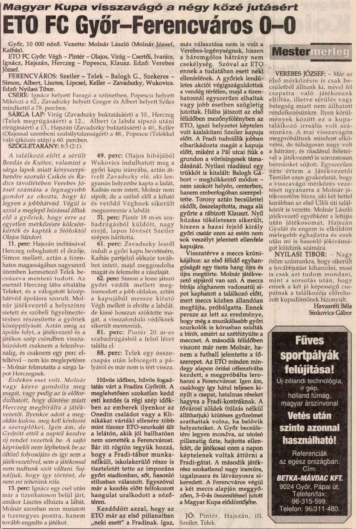 1994.III.29. MK, ETO FC Győr – Ferencváros 0-0