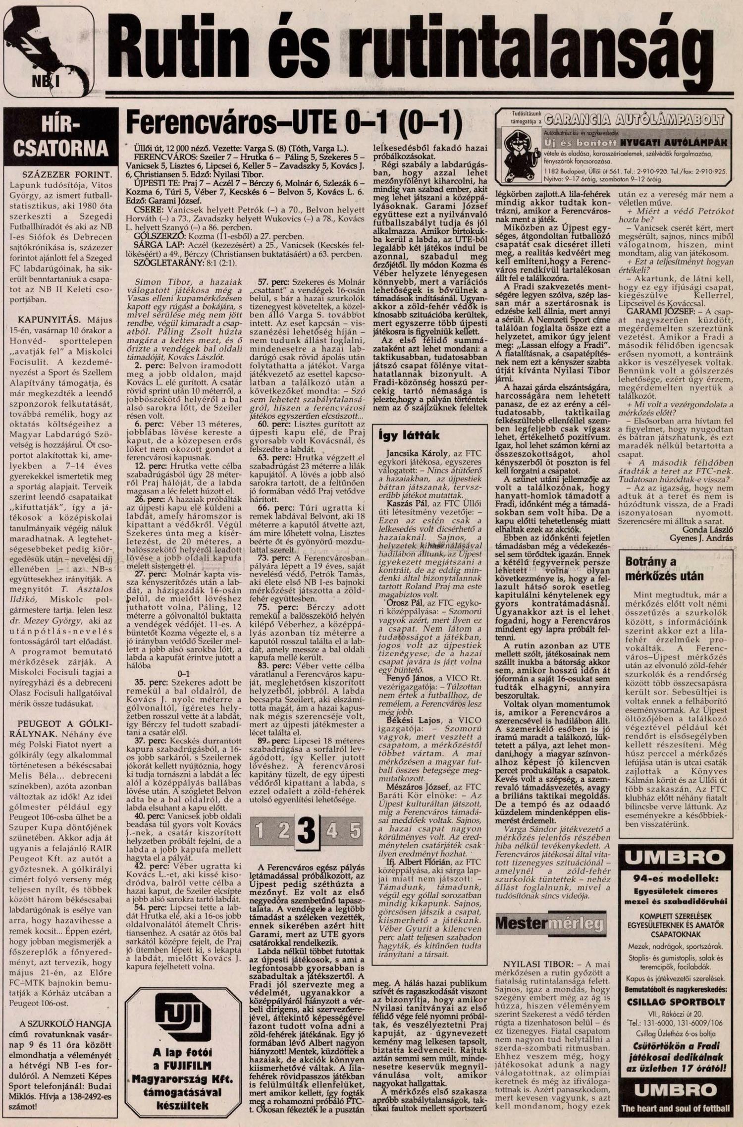1994.V.14. Ferencváros – Újpesti TE 0-1