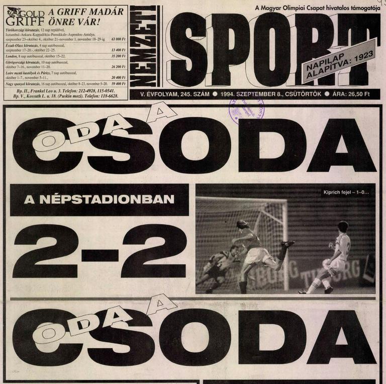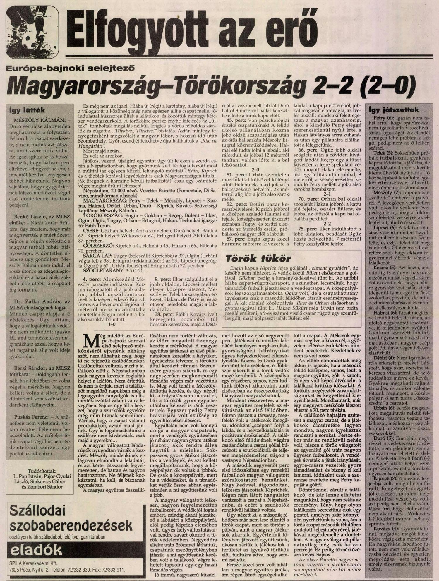 1994.IX.7. EB selejtező, Magyarország – Törökország 2-2
