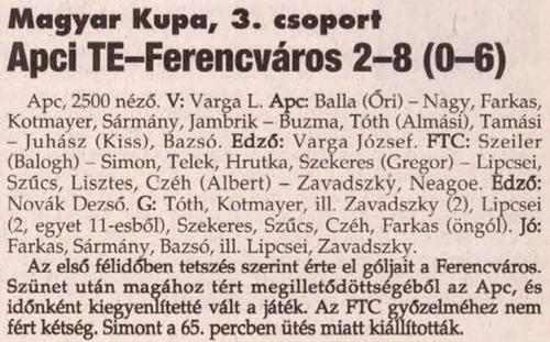 1994.VIII.17. MK, Apc – Ferencváros 2-8