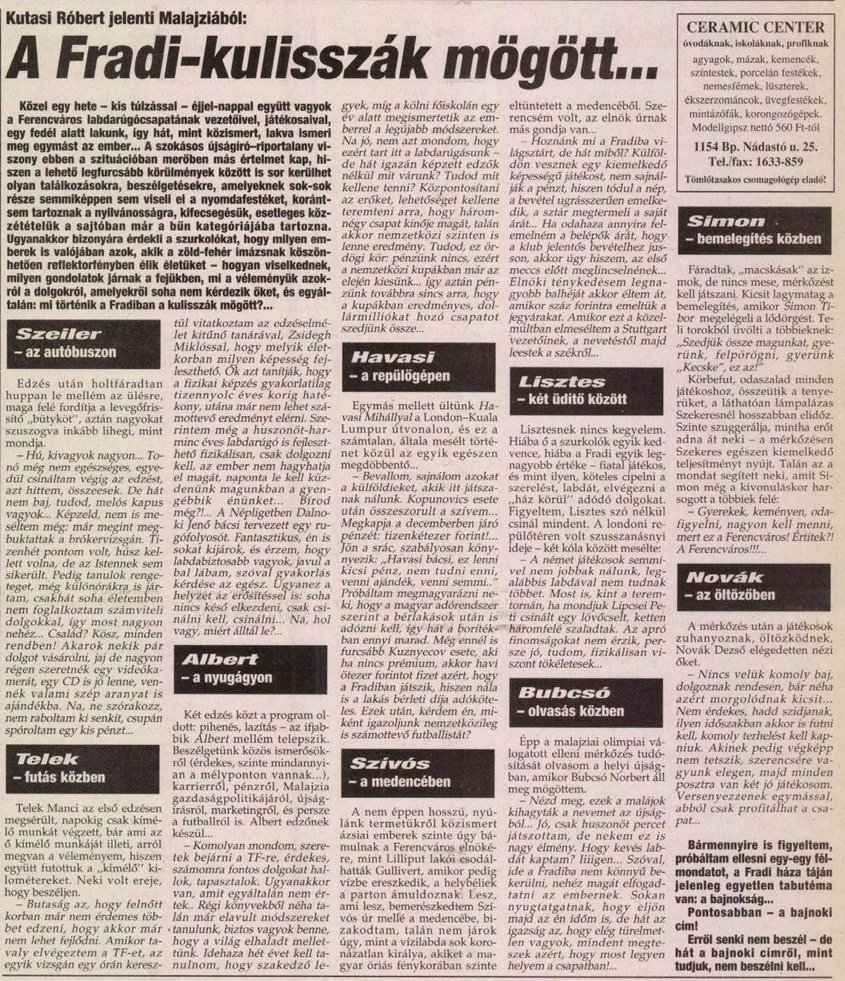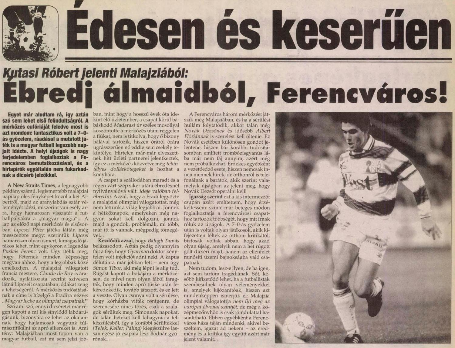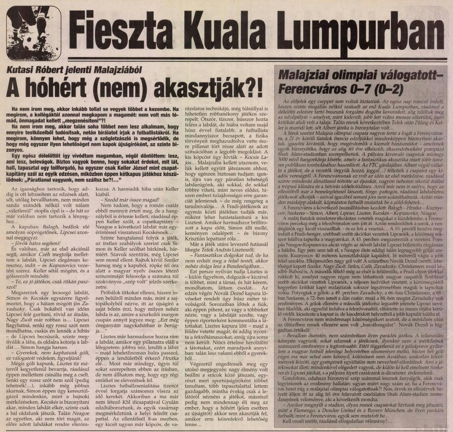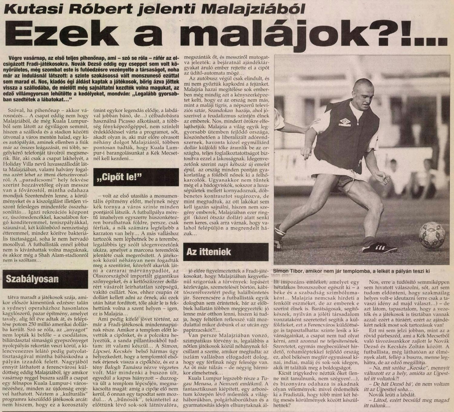 Igen, ennek is már 20 (húsz!) éve! Akkor még legalább Malaysiába hívták a Fradit, ha nem is Dél-Amerikába, mint ’81-ig … és nem MI fizettünk a törökországi, horvátországi edzőtáborokért … hanem 1-1 túra dollár-tízezreket hozott! No, nem a Klubnak, hanem a T. Magyar Államnak …