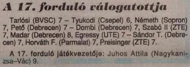 9 gólos: Sándor T. (Debreceni VSC), Wukovics (UTE-Novabau)