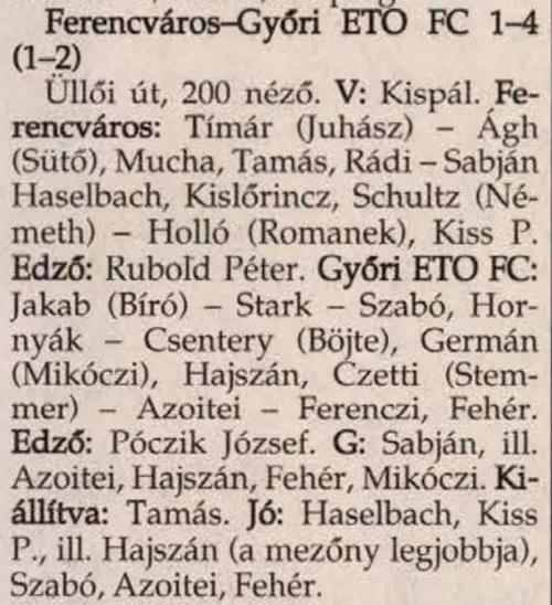1995.IX.23. Ferencváros – Győri ETO 2-0